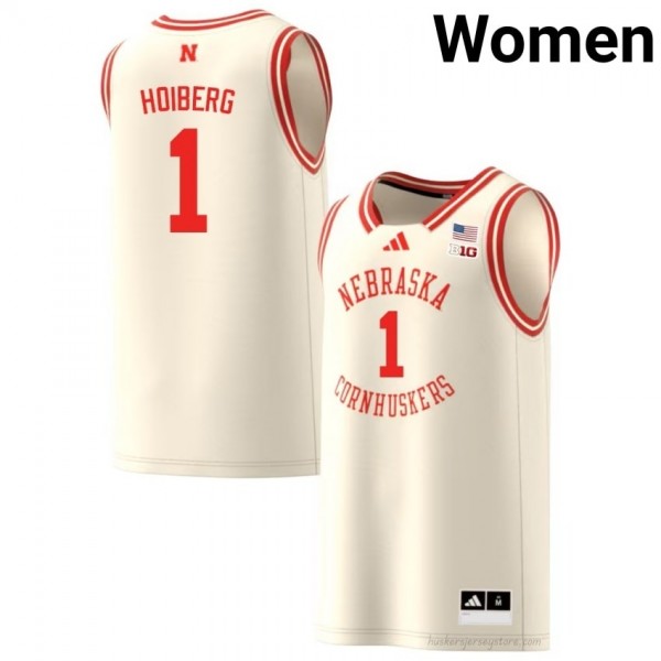 Authentic Stitched Sam Hoiberg NU Huskers #1 Cream Women Player Basketball Jersey 2025-26