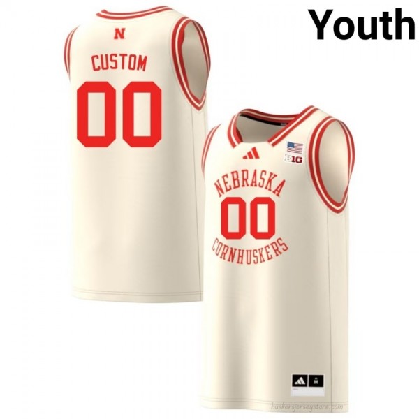 Show Your Husker Pride: Custom #00 Cornhuskers Cream Youth Basketball NCAA Jersey 2025-2026 Stitched