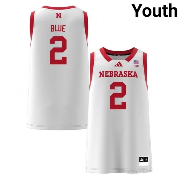 Kendall Blue Huskers #2 University Basketball Jersey 2025-26 Youth White Adidas Swingman