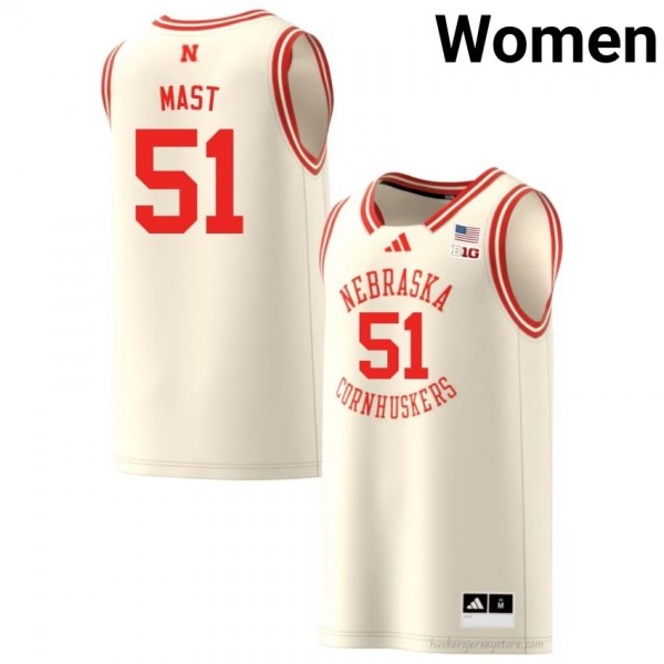 Rienk Mast #51 Huskers Cream Women Basketball University Jersey 2025-2026 Stitched